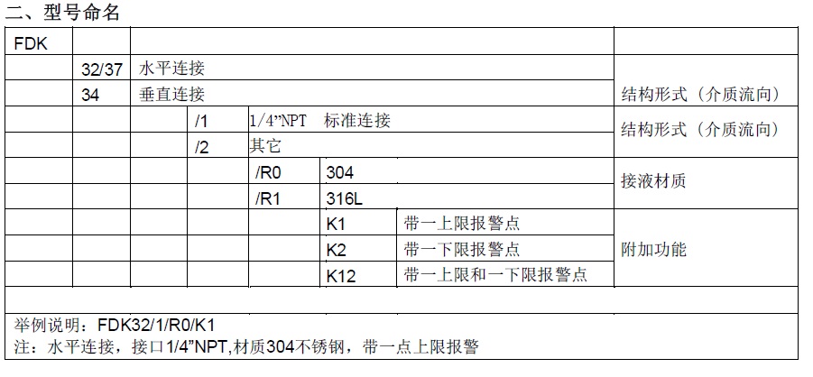FDK系列为现场指示型仪表,可选装一个或二个本安防爆型报警开关(需配备关联设备);FDK37 系 列为电远传型仪表,输出 4~20mA 电流信号(兼容 HART 通讯协议),同时采用 LED 光柱现场指示流量。